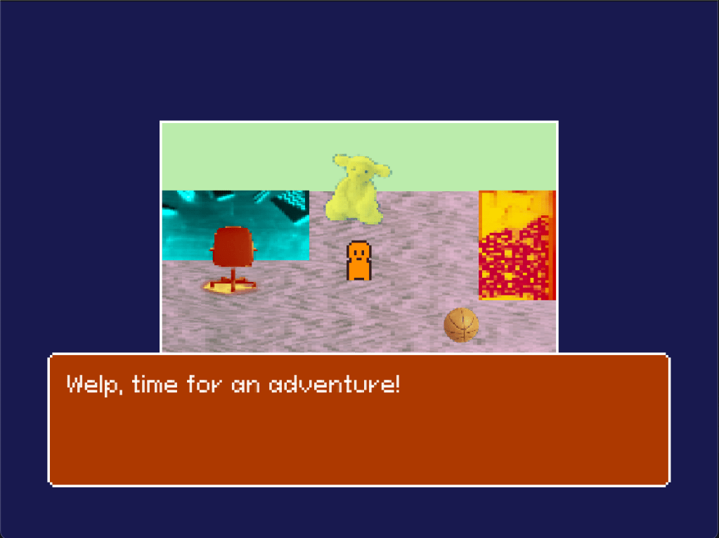My project’s theme and narrative relate to other works, one being the game Earthbound. Earthbound is a 1994 RPG about kids with psychic and physical abilities taking down an alien force that invaded their hometown. The game’s tone is goofy and comical, with an ordinary setting different from other RPGs of the time. My project also uses a sillier tone and is about a kid reclaiming his home. Instead of taking place in some fantasy land, both games take place mainly in regular locations. Using a familiar setting but a ridiculous narrative allows the player to draw connections between the game and the real world, and view real issues of modern society in a different way.